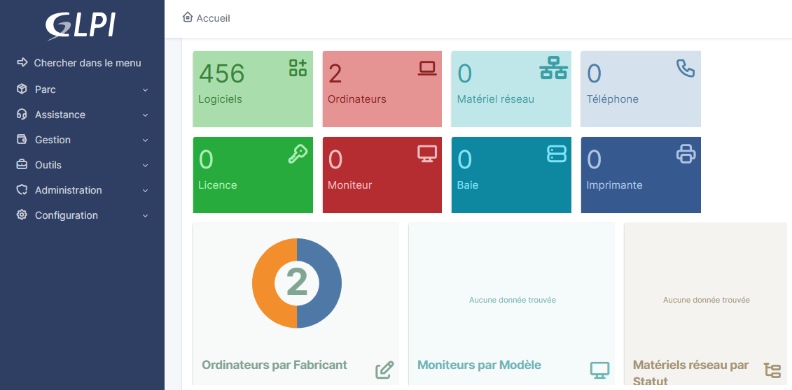 Dans le cadre d'un TP du cours de Support et mise à disposition de services informatiques, j'ai déployé une solution GLPI sur une machine virtuelle Debian afin d'automatiser le recensement des équipements (postes, serveurs, périphériques, logiciels) et centraliser les informations d'inventaire au sein d'une interface web.